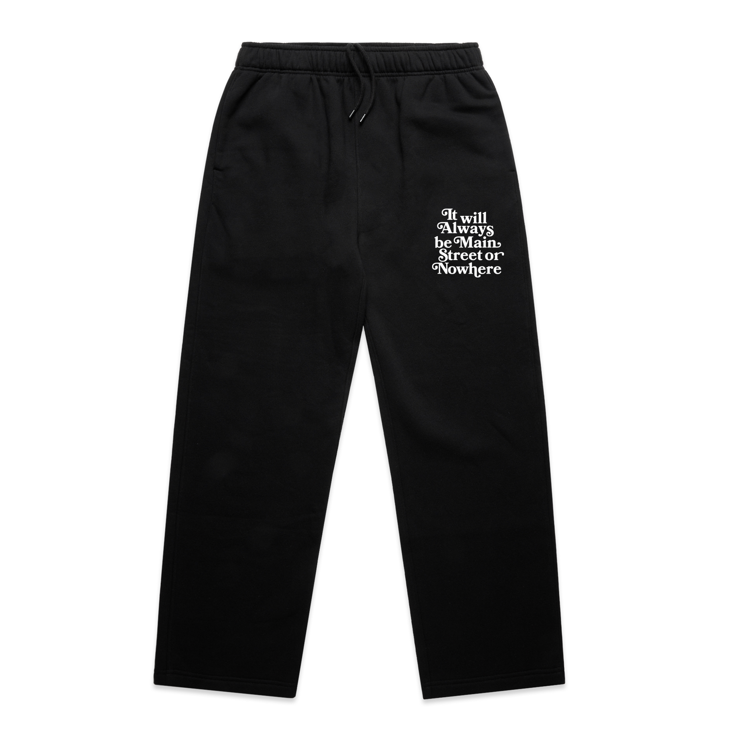 Complete the look. Our heavyweight black joggers bring the same uncompromising quality and attitude that defines Main Street or Nowhere – where comfort meets culture, and boundaries don't exist.